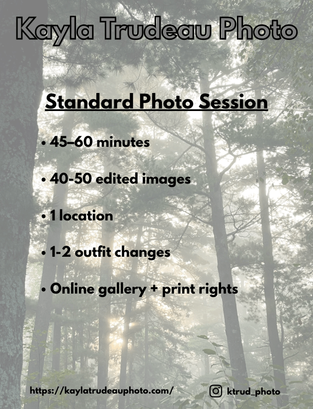 When scheduling, please use the Comments section to let me know which type of session you’re interested in and share any details about your vision for the shoot.